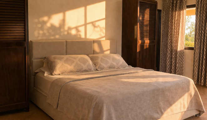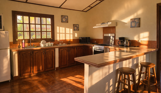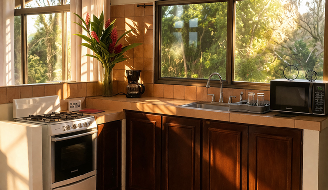 Our cozy 1-Bedroom Villa is ideal for couples, families, or groups seeking comfort and a relaxing stay. It features a main bedroom with a king bed, a beautiful mountain view, a fully equipped kitchen with a dining area, and a spacious living room. The living area includes 2 additional twin beds for extra capacity. It also offers a patio perfect for enjoying the outdoors and the surrounding nature. This non-smoking villa provides the ideal atmosphere to rest and fully enjoy your stay.
